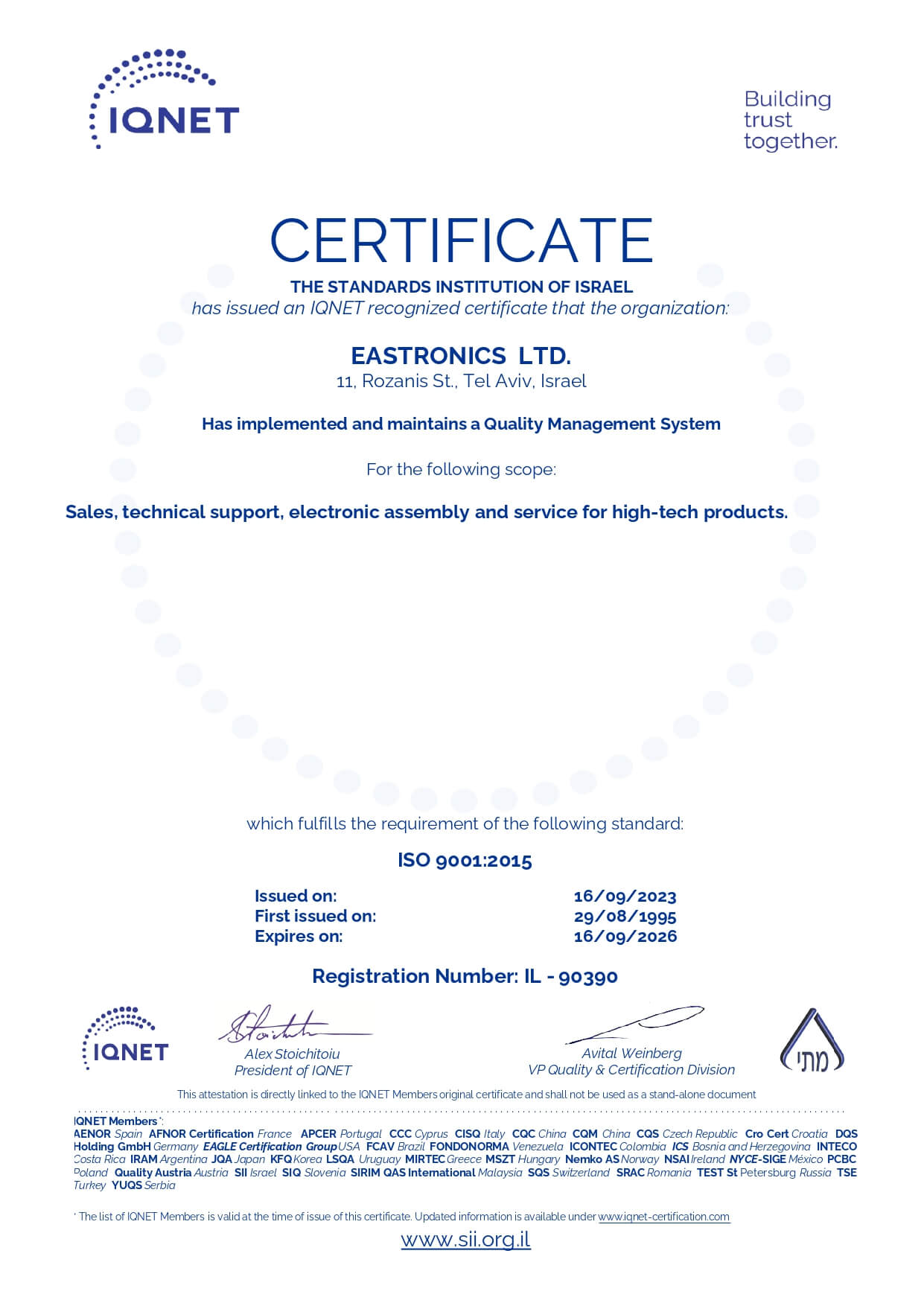 על מנת לשמור ולחזק את מעמדה של איסטרוניקס כחברה מובילה בתחום השיווק, שירות, תחזוקה ותמיכה טכנית של רכיבים, מיכשור ומערכות למגוון לקוחות – מחוייבת הנהלת החברה לענות על הצרכים ולעמוד בציפיות של לקוחותיה – תוך עמידה בדרישות היצרנים המיוצגים על ידה.