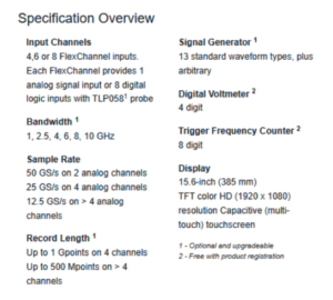 - Up to 1 billion samples (1 Gpt) on all 4 channels